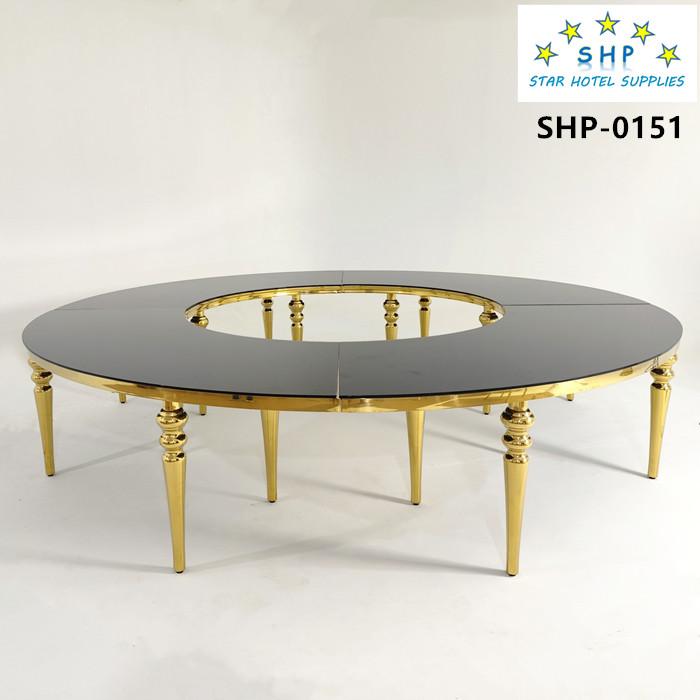 Popular Luxury Sector Glass Top Marble Serpentine Table Wedding Gold Stainless Steel Half Moon S Shape Party Tables